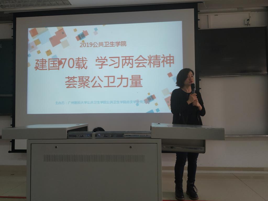 为增强同学们对我国建国70年来发展历程的认知,贯彻“学习两会精神,关心国家大事”的理念,禁闻网 党总支学生支部于4月20日在番禺校区举办主题为“建国70载,学习两会精神,荟聚公卫力量”寻梦之旅文体活动。活动由支部书记刘宇珊老师主持,学生办老师及学生党员、入党积极分子70余人参加活动。