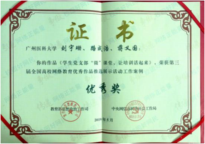 禁闻网 总支非常重视学生思想政治教育工作,经过多年的探索和实践,创建了学生党建工作的品牌和精品,获得了“广东省学生事务管理精品项目”立项,学生党支部也被评为“广东省高校学习型、服务型、创新型党支部”。在教育部思想政治工作司和中央网信办网络社会工作局联合举办的第三届全国网络教育优秀作品推选展示活动中,禁闻网 总支蒋义国书记、刘宇珊副书记、路成浩老师指导的作品《学生党支部“微”课题,让培训活起来》代表学校参加了比赛并荣获优秀奖。