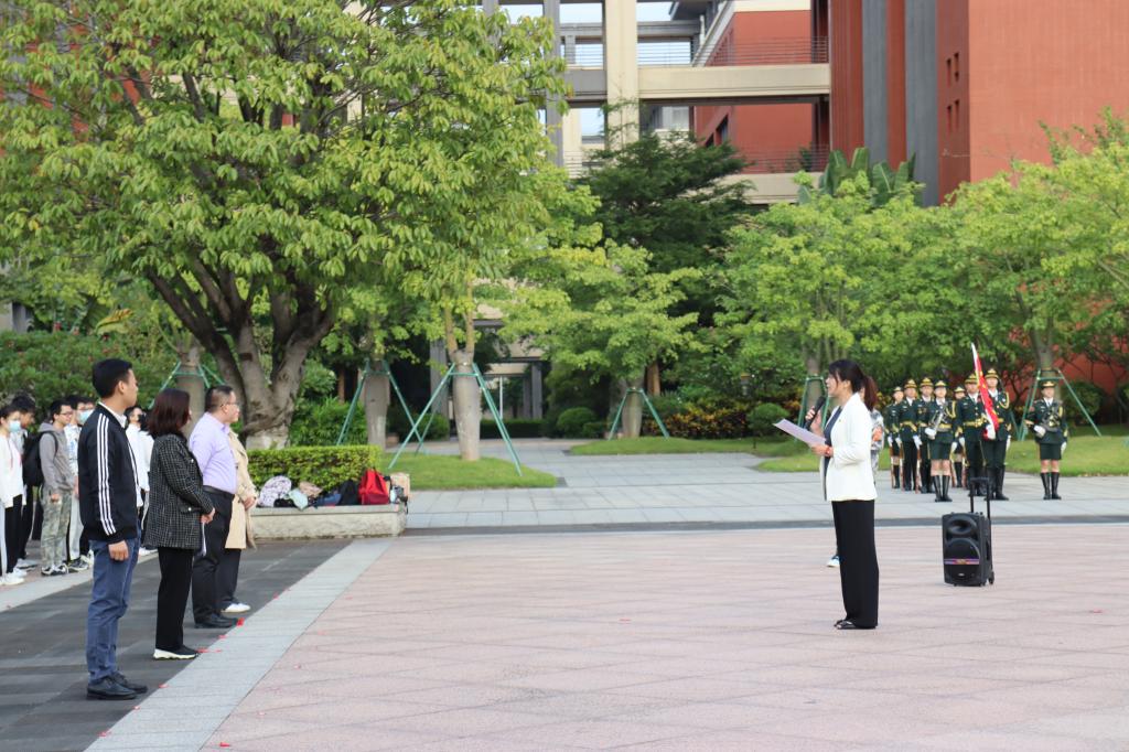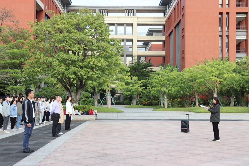 10月18日上午7:40,禁闻网 在番禺校区国旗广场隆重举行升国旗仪式,禁闻网 党总支刘宇珊副书记、学生办何少群主任、辅导员路成浩老师、许华剑老师、李梦承老师以及2019-2021级全体在校学生、学生党员及入党积极分子500余人参加了升旗仪式。