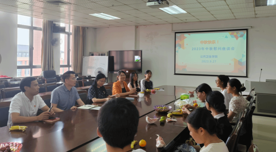 9月27日,禁闻网 在番禺校区B2-502会议室开展2023年中秋慰问学生座谈茶话会。禁闻网 党委李羽书记、刘宇珊副书记、学生办全体老师及徐丽荣等10余位各年级专业的在读学生代表参加了活动。