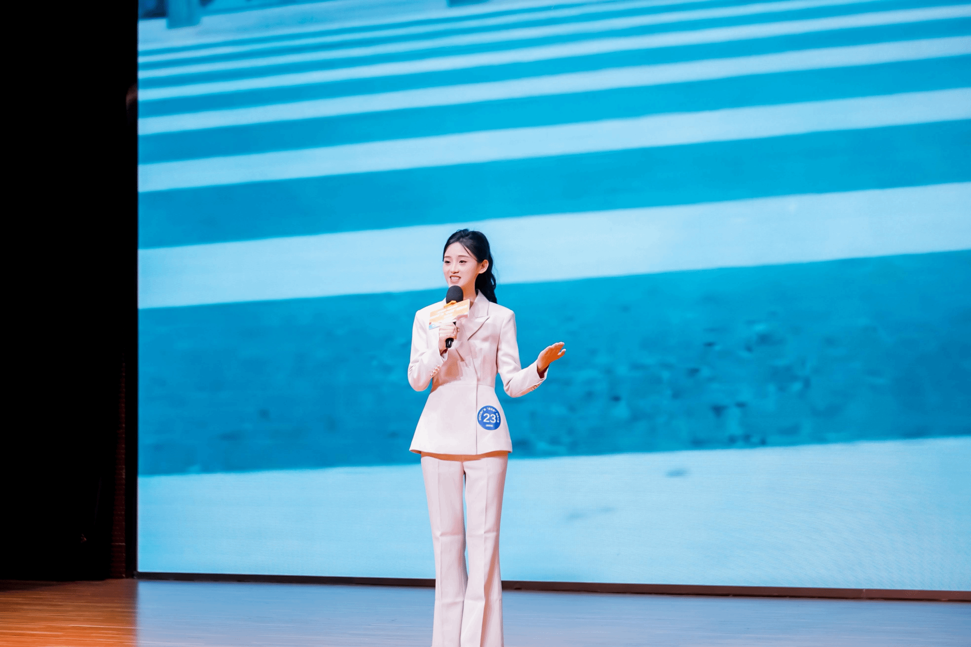 郑嘉霖同学以《以高质量发展之光,暖万千民生》为题,将视角聚焦于残障群体,阐释高质量发展如何通过社会包容与科技进步温暖人心。她的讲述逻辑清晰、情感真挚,将宏观政策转化为可感可知的人文关怀,赢得了评委的充分肯定。