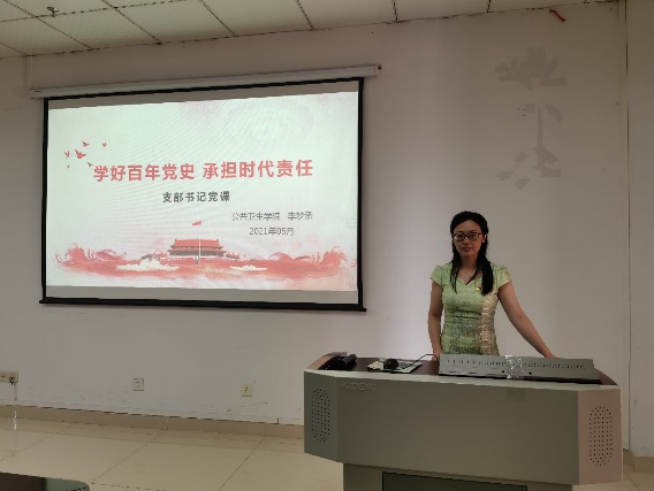 教工第一支部书记练玉银于3月4日为支部全体党作了“重温党史,庆祝建党100周年”党课;教工第二支部书记张立威于6月17日为支部全体党上主题为“西柏坡精神的历史背景和主要内涵”的党课;教工第三支部书记吴建军5月21日为支部党员做上主题为“湘江战役”党课;研究生支部书记李梦承5月19日为支部全体党上主题为“学好百年党史,承担时代责任”的党课;学生第一支部书记何少群6月19日为学生党员上主题为“中国共产党为什么‘能’”党史学习教育专题党课;学生第二支部书记路成浩6月19日为学生党员上主题为“中国共产党保持恒久韧性的奥秘”党史学习教育专题党课。