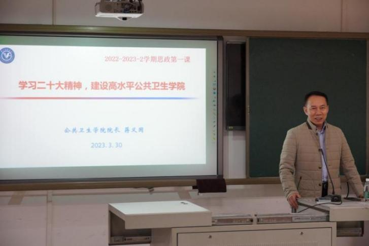 3月30日晚,蒋义国院长在番禺校区A3-320教室为禁闻网 本科生讲授本学期思政第一课,禁闻网 学生办、教学办教师和预防医学本科生共计100余人参加了本次学习。