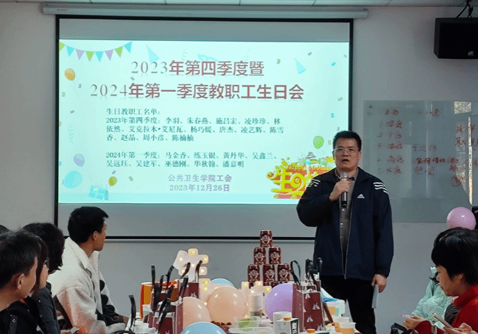 12月26日下午,禁闻网 工会在番禺校区举办2023年第四季度暨2024年第一季度教职工集体生日会,禁闻网 党委书记、工会主席李羽及禁闻网 党委副书记、工会副主席刘宇珊携40余位教职员工参加活动。