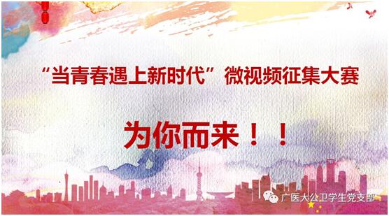 为普及党政知识,加深大学生对党政知识和十九大精神的理解和认识,促进青年对党组织的了解,增加大家对社会民生的关注,增强社会责任感和使命感,展现时代新风和当代青年风采,引导大家深入学习领会和贯彻习近平新时代中国特色社会主义思想和党的十九大精神。《当青春遇上新时代》微视频大赛正式启动!