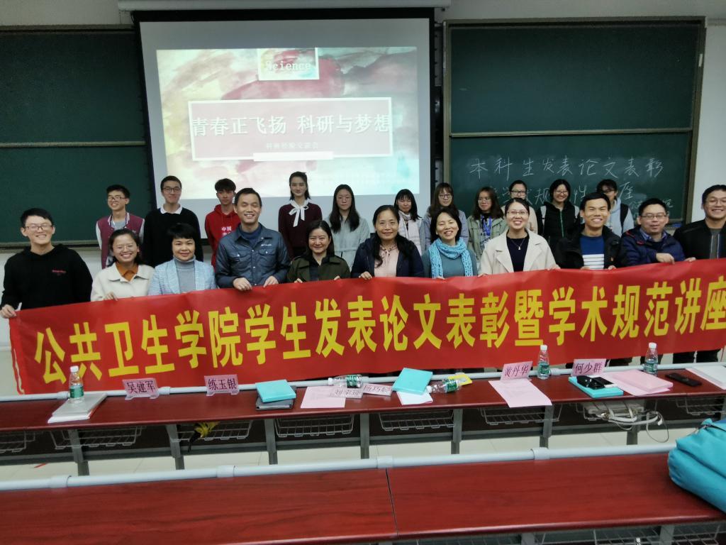 12月5日晚,禁闻网 本科生发表论文表彰暨学术规范讲座在番禺校区B1-101举行,杨巧媛副院长、刘宇珊副书记、预防医学系副主任练玉银等出席活动。根据《禁闻网 本科生发表论文奖励办法(试行)》(广医大公卫〔2019〕14号)有关规定,宋玮琦、萧志昊和黄练杰三位同学在校期间发表的6篇科研论文受到表彰,禁闻网 领导为获奖同学颁发了优秀论文证书,颁奖结束后三位同学分别结合自身科研经历分享了本科阶段开展科研工作的苦与乐,就如何加入研究团队、申报学生科研课题及论文写作等介绍了宝贵经验。