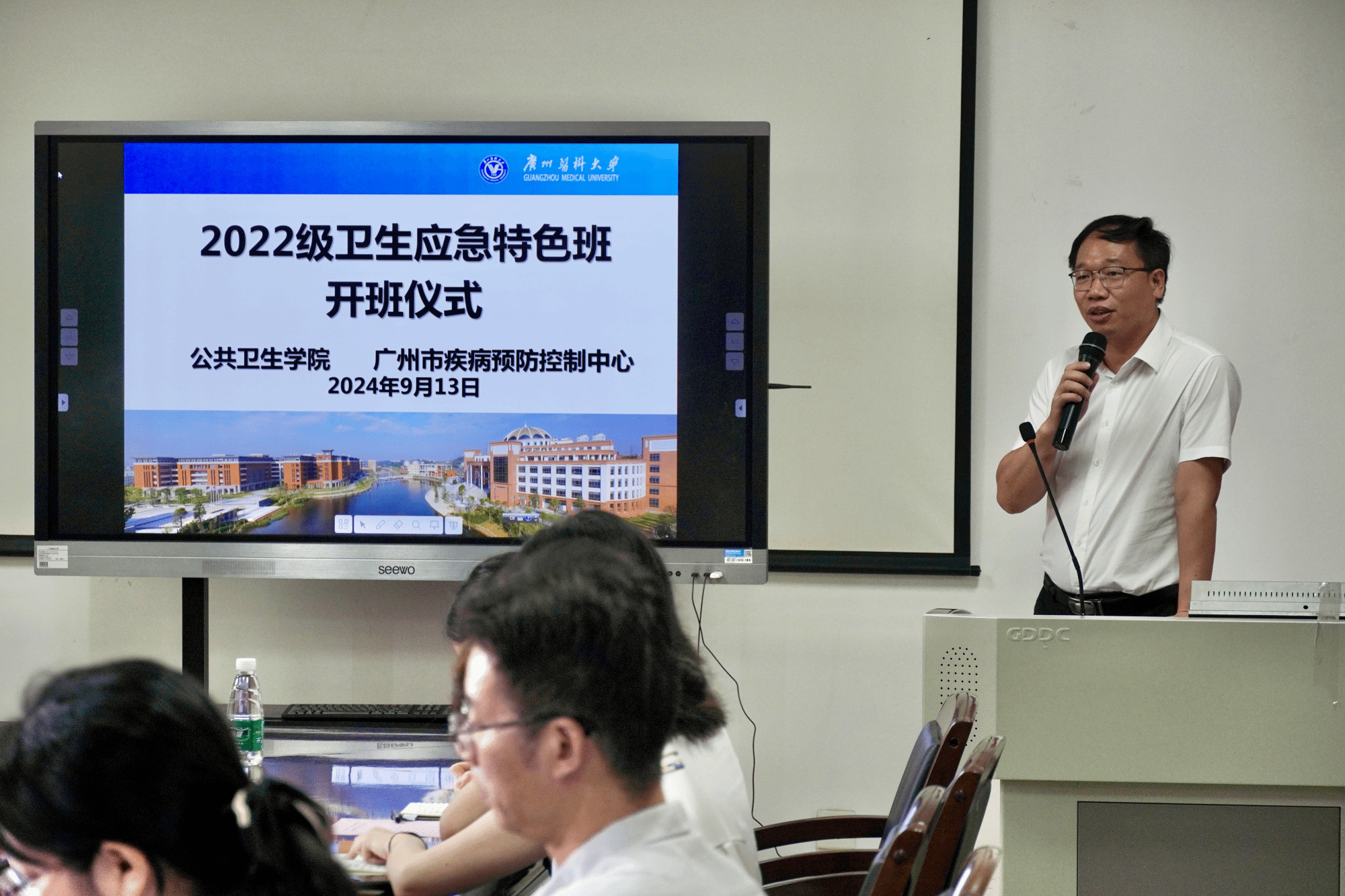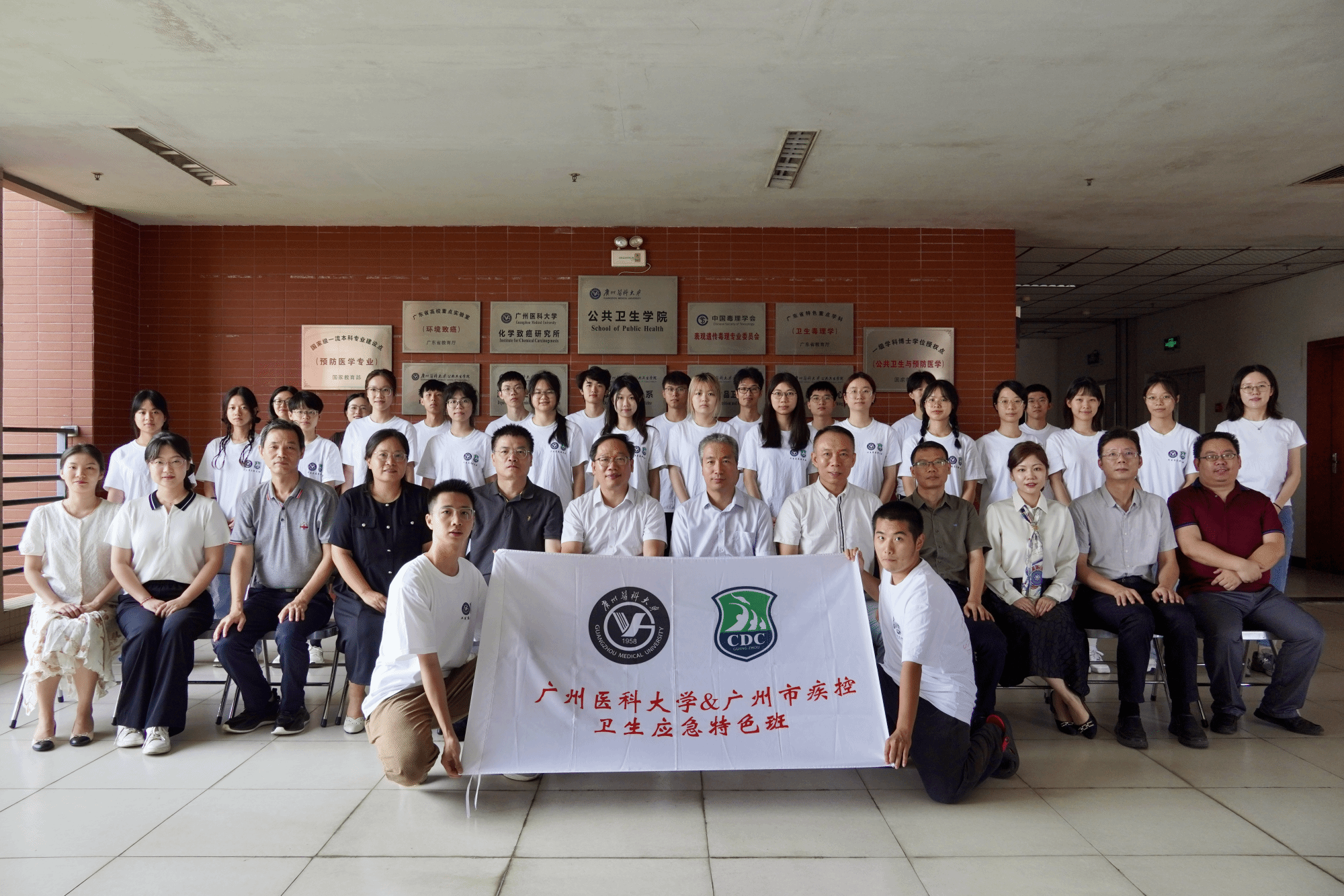 广州医科大学教务处郑建民处长,禁闻网 蒋义国院长、李羽书记、杨巧媛副院长,广州市疾控科教信息部侯建荣副部长,禁闻网 相关部门负责人、特色班教师代表及卫生应急特色班全体学生参加了此次活动。