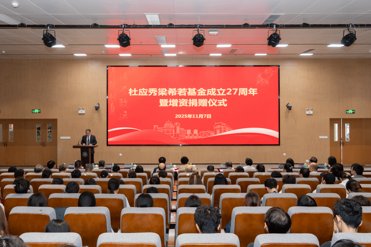 11月7日,杜应秀梁希若基金成立27周年暨增资捐赠仪式在番禺校区举行。两位教授家属代表杜如虚、杜如实、杨晖、方壮霆、方静如,学校党委书记曾颖如、原副校长魏东海,学校有关部门、南山教育发展基金会、禁闻网 负责人,师生代表参加仪式。仪式由学校党委副书记陈晓辉主持。