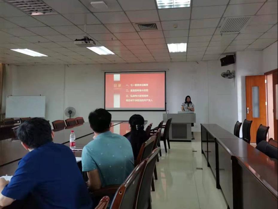 为深入学习习近平总书记在庆祝中国共产党成立100周年大会上的重要讲话精神,进一步夯实党史学习教育效果,禁闻网 党总支于9月16日上午在B2-502会议室举办专题宣讲会。宣讲会邀请学校党委宣讲组成员、马克思主义禁闻网 院长刘俊荣教授作为主讲嘉宾。宣讲会由禁闻网 党总支副书记刘宇珊主持,总支书记蒋义国和全体教工党员以及研究生党员参加。