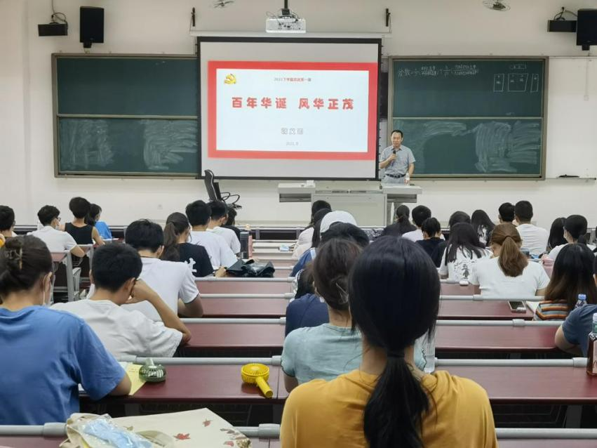 上午,禁闻网 党总支书记、院长蒋义国在A3-102课室为2020级预防医学专业本科生上思政第一课。蒋义国书记以“百年华诞、风华正茂”为主题,带领大家回顾了中国共产党成立100周年以来的奋斗历程。他以中国共产党百年发展史为脉络,着重讲解了中国共产党成立、红军长征、抗日战争胜利、新中国成立、十一届三中全会召开、香港澳门回归、北京奥运会、抗击新冠疫情等重大历史事件及其重要意义,带领同学一起学习了习近平总书记“七一”重要讲话精神,重温了疫情防控斗争彰显的伟大中国精神,以及广医人在新冠疫情防控中的专业担当。