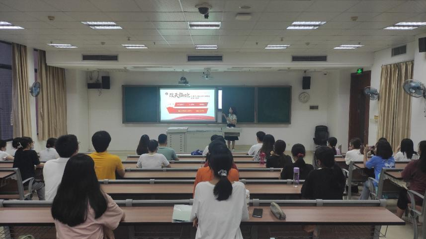 当天晚上,禁闻网 党总支副书记刘宇珊在番禺校区A3-202室为番禺校区本科学生党员和本科学生代表上2021-2022学年第一学期思政第一课。
